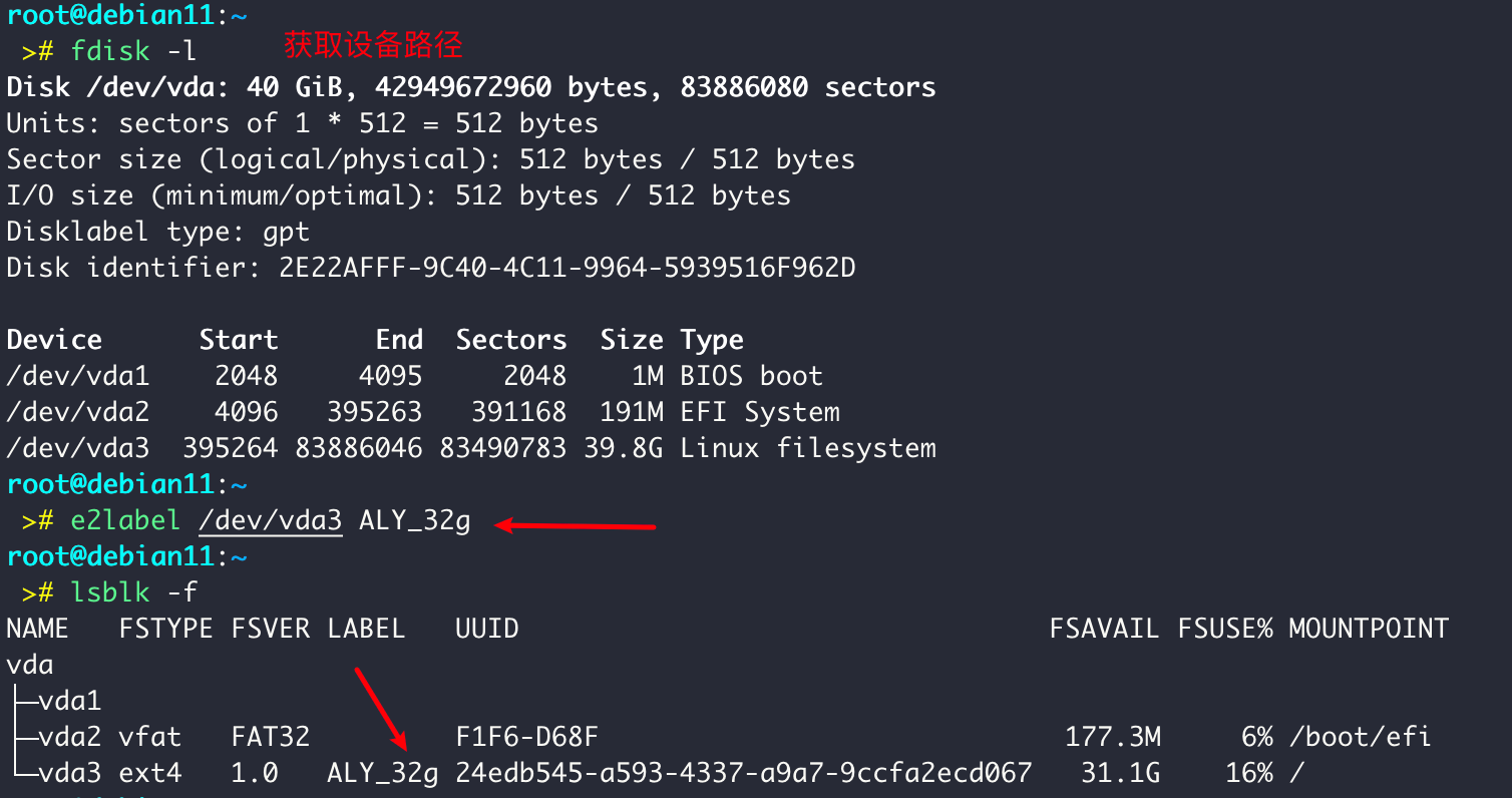 其它方法:还可以通过 LABEL 进行挂载,和 uuid 一样。使用 e2label 命令设置标签。