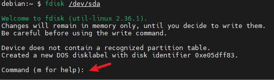 fdisk /dev/sda 给新硬盘进行分区。输入 m,获取帮助信息,输入 p,查看所有分区。