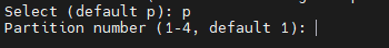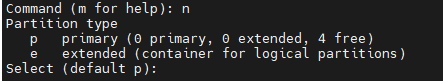 这里输入 n,创建一个分区。(输入 e 为创建扩展分区,输入 p 为创建逻辑分区),默认为 p