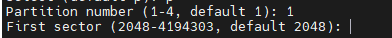 输入分区编号,默认的就行,这里输入 1
