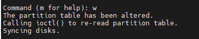 最后记得输入 w 将分区表写入硬盘