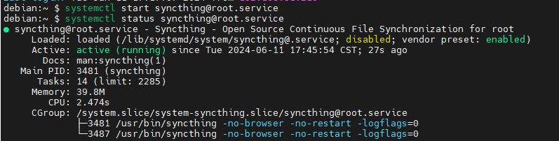 启动运行:安装 syncthing 后,我们需要使用 systemctl 命令手动启用它以在启动时自动启动它。官方的 Syncthing 包在下面提供了所需的 systemd 服务文件。