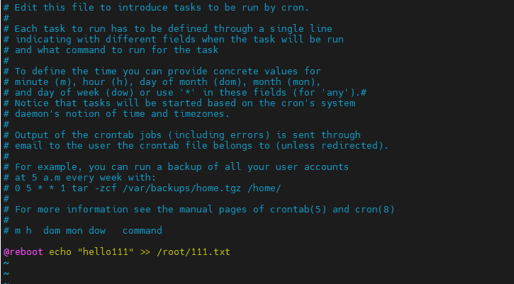 # 通过@reboot 命令,后面填入需要开机自启的命令或脚本路径。