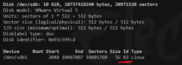 输入fdisk /dev/sdb,回车,然后输入m,回车,输入t,选择分区1,输入id值8e,输入w保存