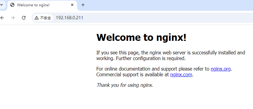 1)服务器上需要安装有 apache 或 nginx 等服务器,并可以正常访问,这里使用 nginx 为例,服务器 ip 为 192.168.0.211 网站目录为 /var/www/html/